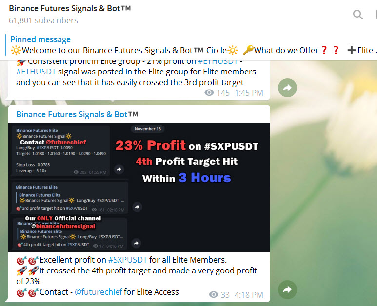 We are the team of Largest Crypto trading group providing Binance future, Bybit, Kraken, Bitseven signals on telegram. We hold an accuracy of more than 85% which allows us to have a very little drawdown and maximum profits. All results are verified