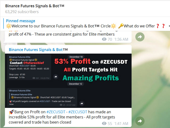 We also provide Binance Futures Bot - You don’t need to spend hours in front of the charts and news channel everyday. We do that for you while you can spend that time elsewhere. You can have our service and make money while you are on a job or spending time with your family. We also provide Binance Futures Bot & all our Signals are copied via Cornix Bot on your account.