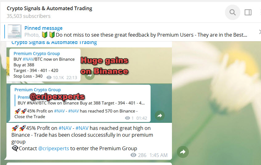 Since 4 years and more, we have continuously serve the Crypto Market. We provide powerful Crypto Bots which automatically generates profit based on the trend of the market. It has 45 strategies inbuilt to make Crypto Trading very profitable. You may just visit above given telegram channel