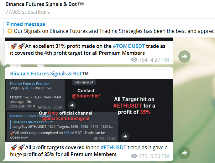 Largest Crypto trading Community in telegram for Binance Futures trading. We provide high end tools and high quality Signals for Binance Futures, ByBit signals on Telegram accuracy around 80-90%. All signals are provided by our Experts Team with proper take profit and proper stop loss including leverage.