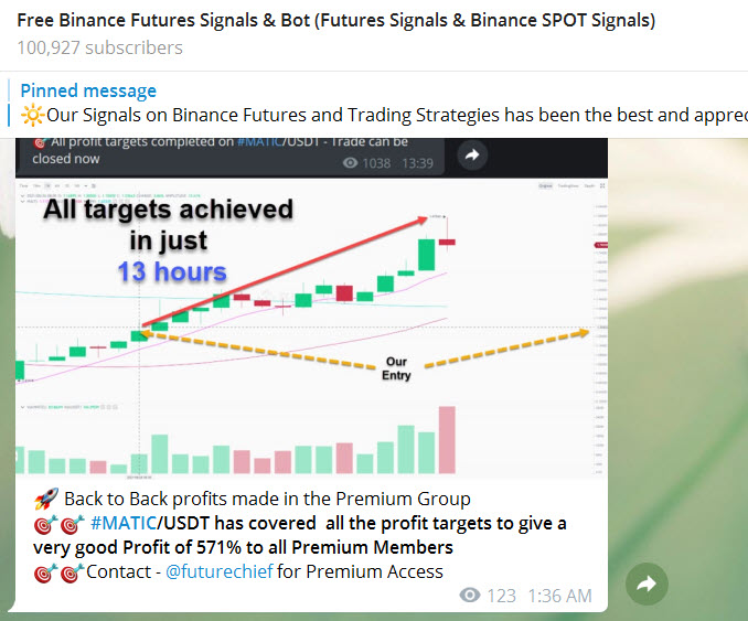 FREE Binance Future, Bybit, Binance, Bittrex, Wazirfx, Coinswitch Long & Short high quality Signals on telegram along with Technical Indicators around 80-90% accuracy all our Signals are posted after detailed analysis & regular updates are also provided for Traders which ensures they enter and close trades at accurate time. - Signals are informed to Elite Members very early in advance thus any trader from any part of the World can easily take position.