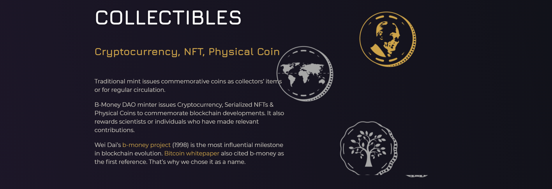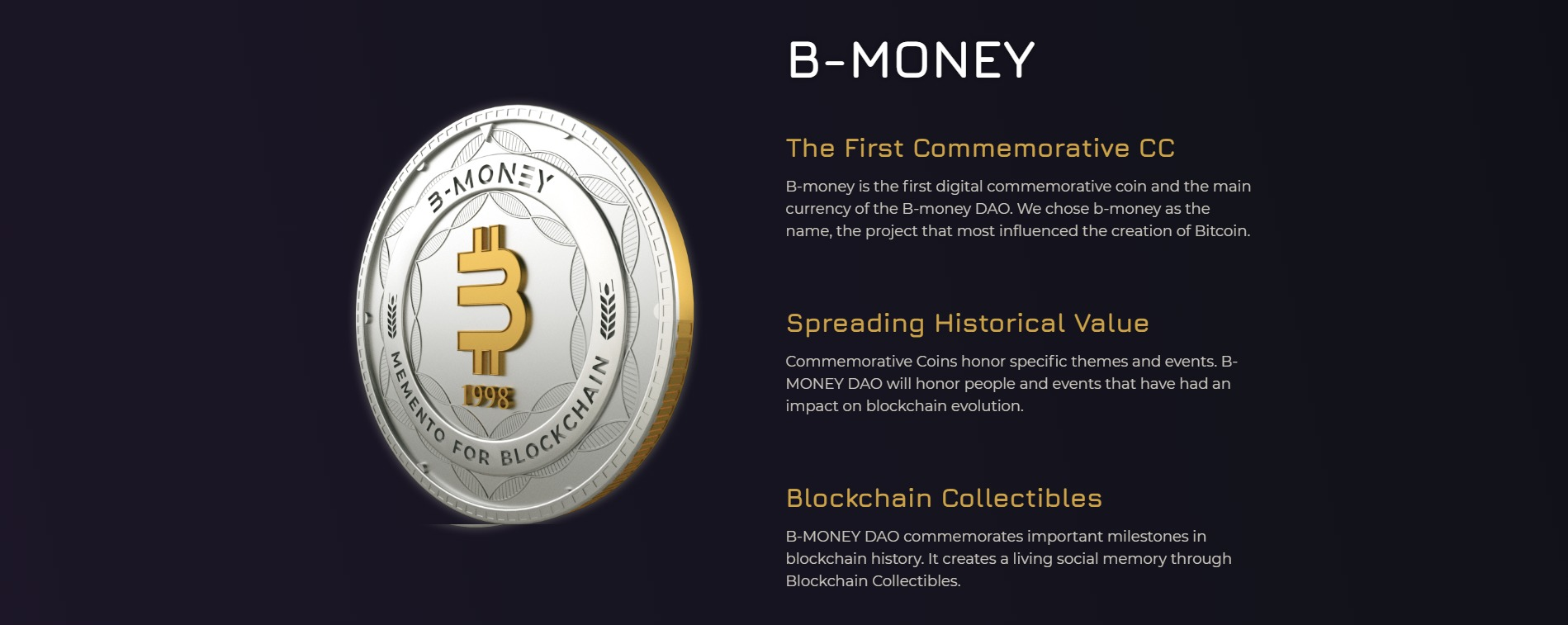 Behind the power of today's cryptocurrencies, including Bitcoin, there are many scientific and social steps taken by great people. B-money DAO aims to inform and create a social memory by bringing up key people and events in the history of blockchain. Turning the important milestones into Memento Cryptocurrencies as a tribute to those that serve the cryptocurrency community.