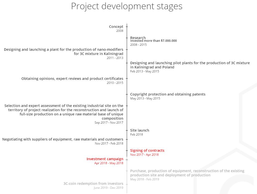 The funds collected during the realisation of the 3cCoin derivative will be used to launch an ecologically clean, green (based on the processing technology of a wide range of waste), full - scale three-phase production of this unique, innovative, highly ecological and universal construction material, which has no analogues in the world, and the development of appropriate technologies.