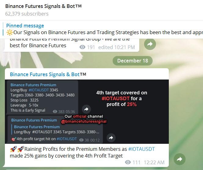 Largest Binance Futures Bybit signal group on telegram that sends live buy and sell Binance Futures signals With TP/SL points. Binance Futures Trading signals are a good way of knowing market movement tip. Binance Futures Team provides you with the best live free Binance Futures signals. All results are verified. Give our Free Telegram channel a visit to try our FREE Signals