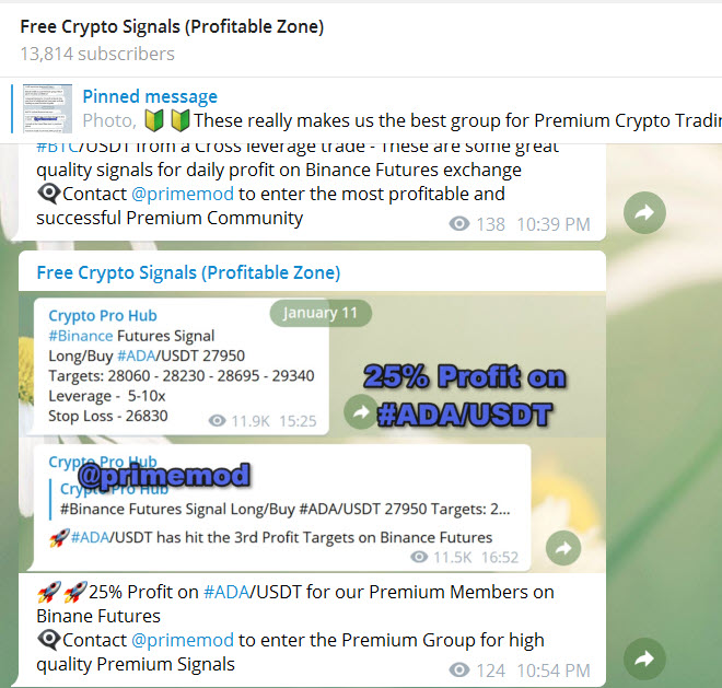 Largest Free Crypto Signal Provider on Telegram. We are the ONLY Signal Community which provides EXIT signals at precise moment. We provide Crypto signals for Binance, Bittrex, Binance future, Gdax, Bybit, Kraken, Bitseven & many other exchanges get daily 3-4 good quality 80-90% accuracy