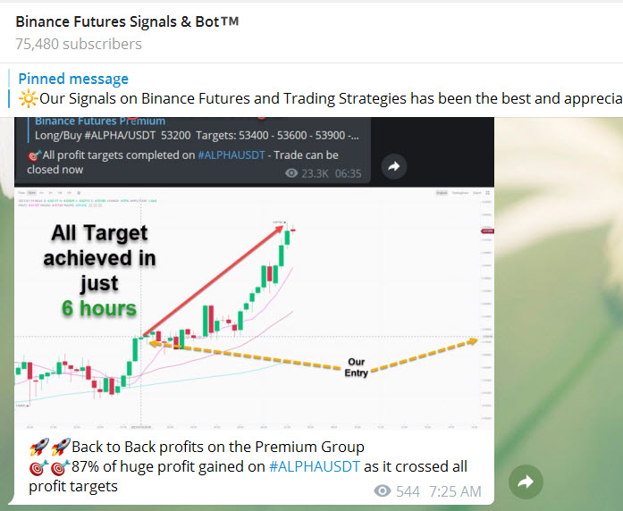 We too provide daily 3-4 good quality signal for Binance Futures Signals Bybit as per the Market with high a accuracy of 80-90% on an average. These signals are provided by our Experts who are in Crypto Industry for more than 5 years. The signals are given with proper take profit and proper stop loss including leverage