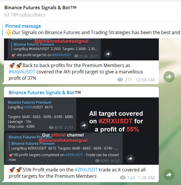 We are the Worlds Number 1 Signal Service for Binance Futures, Bybit in 2021 on telegram. Get free trading signals from Binance Futures, Bybit. These signals are provided by our Experts who are in Crypto Industry for more than 5 years. All signals are given with proper take profit and proper stop loss including leverage