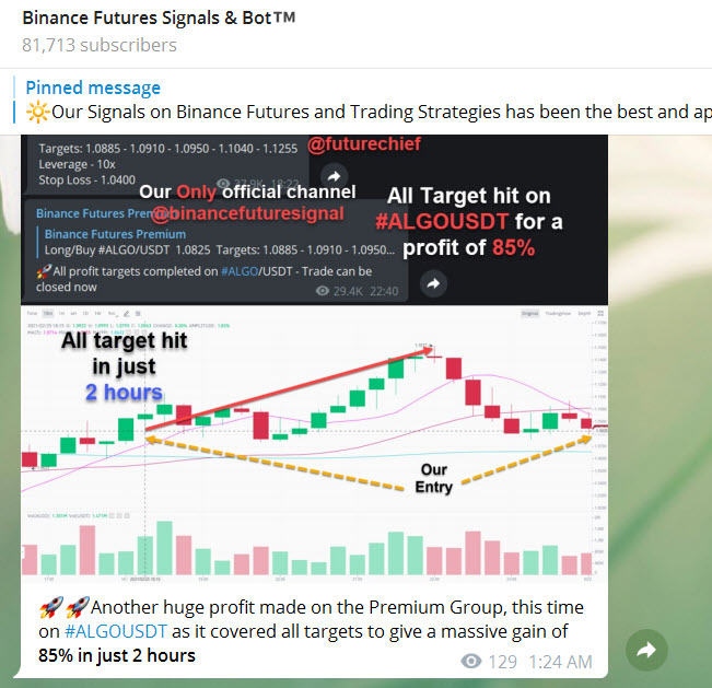 Daily 3-4 high quality Binance Futures, ByBit signals on Telegram accuracy around 80-90%. All signals are provided by our Experts Team with proper take profit and proper stop loss including leverage