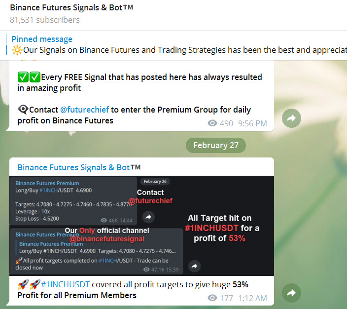Daily 3-4 high quality Binance Futures, ByBit signals on Telegram accuracy around 80-90%. All signals are provided by our Experts Team with proper take profit and proper stop loss including leverage