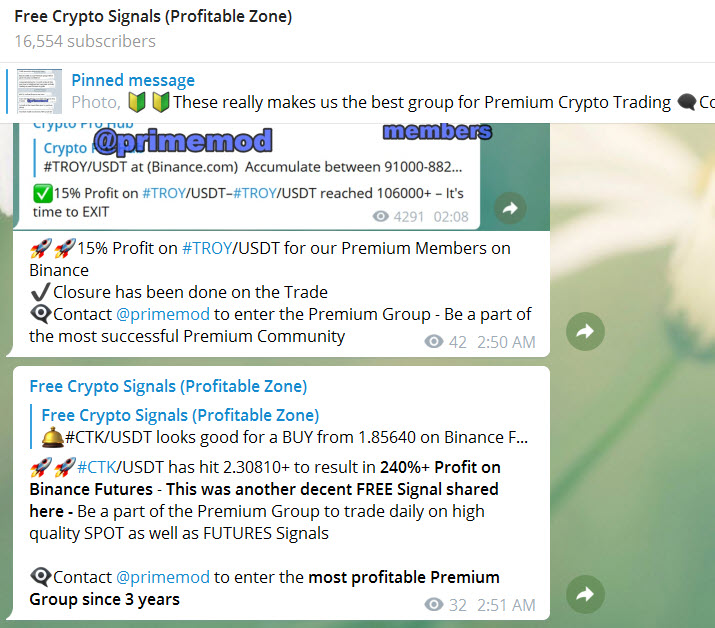 We are the Number# 1 & Largest Community Signals provider on telegram offer daily 3-4 high quality Crypto signals for Binance, Bitmex, Bittrex, Binance Futures, Bybit & many other exchanges around 80-90% accuracy. All signals are provided by our Experts Team with proper take profit and proper stop loss. We also provide free Crypto trading basic training learn when buy/sell in market & Free automated Crypto trading BOT does trade automatically in your account get free from manual trading for more join above given Telegram group