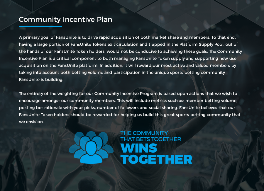 Here's a Medium post outlining why we feel our platform will be great for the individual bettor: https://medium.com/fansunite/fansunite- ... caec73ce6c