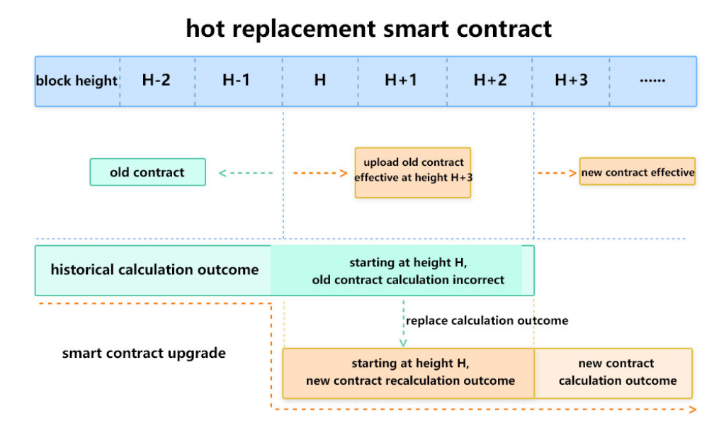 Yuan Chain community improved upon the conventional smart contract, upgrading to a hot replacement smart contract. Yuan Chain smart contract users can update the contract address while the system is functioning (without shut down the node). The users can obtain the smart contract through this register.